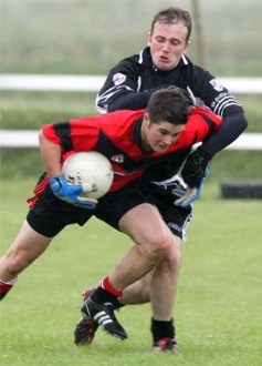 the helpless Sean Noone. Four frees by Michael Harkin were all the visitors had to show at the end of the first period. The late arrival of the visitors, who were badly struggling with numbers (they arrived with just 17 players togged out) caused the start time to be put back fifteen minutes, while the Reserve game between the teams had to be called off as Urris couldn't field. To their credit, though, they didn't give up the ghost, but their lack of cohesive play in the final third would ultimately prove fatal. From Caulfield's goal three minutes from the interval, the closest Urris came was to within five points when Dara Doherty converted a free five minutes from the end. While Na Rossa continued to hold the upper hand, they weren't as impressive in the second half as they had been in the first, although a neat effort from distance by Cormac McHugh and a pair of points from |