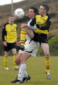 Glengad...2 Kilmacrennan...1 by Inishowen Independent A CONTROVERSIAL penalty decision from referee Eamon Doherty proved to be the difference between the sides in this keenly contested FAI Junior Cup game in Glengad. On a very cold and blustery day at Glengad’s new pitch it was very difficult to play attractive football, but in fairness to both sides they tried their best and knuckled down to make it a good spectacle for the hardy souls in attendance. With the likes of Marty McGinley and Phillip Buchannan in their ranks, two former Ulster Senior League players, the home team knew that this would be no easy game. The away side had the aid of a strong breeze in the first half and they will be very disappointed with the number of chances they created. They rarely threatened Michael McLaughlin in the Glengad goal in the first period. |