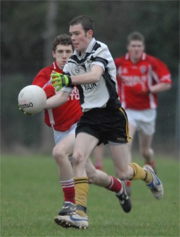 but held a two point interval lead. The Dunfanghy came out with a different attitude in the second half and within three minutes of the restart led by 1-4 to 1-2. With an attack that started in the half back line, St Michael’s swept down the field and Stephen Doak fed Raymond McLaughlin for the latter to show good composure in side-stepping Malin keeper Ruairi Kelly and crashing a goal to the net. A minute later and Michael McGinley increased St Michael’s lead with a fine right footed effort from 30 metres. Malin introduced subs Paul McLaughlin and Robert Porter, with the latter scoring a good point with his first touch of the ball. |