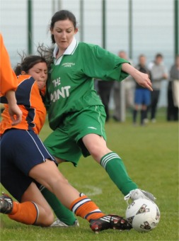 area that was too hot for Evelyn Dougal to handle. The Moville girls’ joy was short-lived, however. Two minutes later, after a short corner between Loirin Melarkey and Danielle Barr, the former curled in a right-footed shot from the left over Emma Cavanagh. McGettigan and Karen Henry missed chances for Moville and Greencastle respectively before Paddy Hannon’s side took the lead just shy of the half hour. A poor Moville clearance presented Ciara Hegarty with the ball on the left wing 35 yards out and she darted forward and cut inside Gemma Faulkner before poking low past Emma Cavanagh. The visitors pressed for a third before the break but couldn’t find a way through. Moville had a good chance to equalise at the start of the second half when McGettigan and Stacy Cavanagh worked an opening for Marie Kelly, but under pressure from the advancing Greencastle net-minder, Kelly scuffed her shot wide. Following that move Greencastle, with Annette McLaughlin revelling in the role of midfield disrupter, kept the ball away from Dougal’s goal |