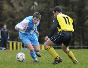 into the Lagan Harps net. Kevin Kelly led the ensuing inquest. The going was soft and for a time it looked like the visitors would get bogged down but driven on by Keith Malseed and Kevin Kelly in midfield, they began to fashion openings. Lagan equalised midway through the first half. Kelly’s rising 25-yard drive crashed back off Michael McLaughlin’s left hand post and Jason Burke followed up to score. The home side rallied and a long-range shot from Glengad midfielder Michael Doherty sailed over before Patrick Doherty found the Lagan keepers midriff with an acrobatic volley. However it was Jason Gibson’s side that looked the more likely of the two sides to score a second. Kelly forced McLaughlin into a smart save five minutes before the break, the Glengad keeper turning his |