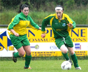 after eight minutes they were in front. Tracy Ryan broke up a Moville move just inside her own half, fed the ball up to Porter who laid it perfectly into strike-partner Niamh McGlynn’s path and she tore thought the Moville defence to beat Norris. Moville came into the game more after going behind and following a scramble in the Cockhill box, Claire Doherty poked the ball tamely at Caroline Donaghey in the home net. Moville, spurred on by skillful forward Marie Kelly, came forward again on 27 minutes when a good passing move from Shauna Faulkner to Sharon McDermott to Kelly ended with Leanne Doherty being barged to the ground just outside the Cockhill penalty box. Kelly stepped up and curled a left-footer over the wall and just beyond the far post. Cockhill continued to carry the greater threat and Norris saved well from Ellen McLaughlin after she carried the ball in on goal from deep. Three minutes before the break Cockhill doubled their lead. Not for the first time they found space down the right side of the pitch. On this occasion Christina McCallion’s sweetly struck shot from 20 yards was too hot for Norris to handle. Cockhill brought on Barbara Doherty for Aisling Gillespie at half time and started the second half on the front foot. Porter went close again, before she eventually took one of the chances that came her way on 48 minutes, beating the advancing Norris to the ball to poke home as Claire Doherty tried in vain to shield the ball from her. At the other end, despite Kelly’s best efforts, Moville could find no way around the well-organised Cockhill defence who were well worth their clean sheet, The home side spurned a some decent chances to increase the score, Christina McCallion, for one, unable to find the net when well positioned, and it wasn’t until eight minutes from time that Jim Gillespie’s side scored a fourth, the pacy Porter latching on to McGlynn’s pass over the top to race clear and lash the ball in off Norris. Moville’s search for their first league win of the season goes on, although they already have a cup victory over Quigley’s Point. For Cockhill, who defeated Culdaff 6-0 last week, tougher challenges await, but few would bet against last year’s cup winners being in the shake up for silverware again in 2008. Cockhill Celtic Caroline Donaghey, Aisling Henderson, Rosemarie Porter, Michelle Kelly, Tracy Doherty, Aisling Gillespie, Ellen McLaughlin, Christina McCallion, Niamh McGlynn, Alana McConalogue. Subs: Barbara Doherty for Gillespie (HT). Moville Celtic Katie Norris, Kerry Gillespie, Gemma Faulkner, Claire Doherty, Rebecca Ryan, Amanda McGonagle, Sharon McDermott, Shauna Faulkner, Marie Kelly, Majella Doherty, Leanne Doherty. Subs: Helena Gillen for McGonagle (50). For full coverage of all your weekend sport, read the Inishowen Independent. |