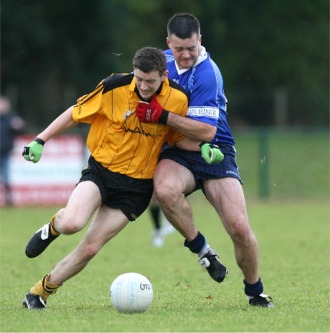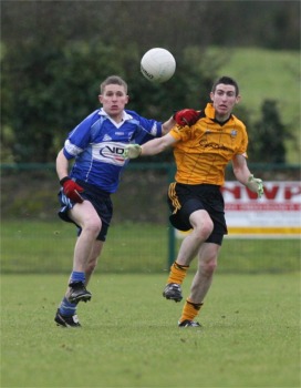 deserving nine point winners. Led by their hard working captain Paddy Kelly in midfield, the Inishowen men had leaders all over the pitch. Full back Damien Harkin was excellent against Fanad dangerman Seimi Friel, while county player Declan Walsh at wing half back was also solid in defence. Walsh also managed to notch over two fine points during the course of the hour. At the other end of the field the inside forward line of Paul McLaughlin, Michael Byrne and Patrick McColgan were lively throughout with full forward Byrne netting the game’s all important goal ten minutes from time. Fanad captain Patrick McConigley battled hard throughout while Aiden McAteer and Ciaran McElwaine also looked sharp, but too many of their players had an off day. Malin opened the scoring on two minutes through Walsh before McConigley’s quickly taken free kick released Michael Sweeney to slot over the equalising score 60 seconds later. Wet underfoot conditions meant that the ball was like the |