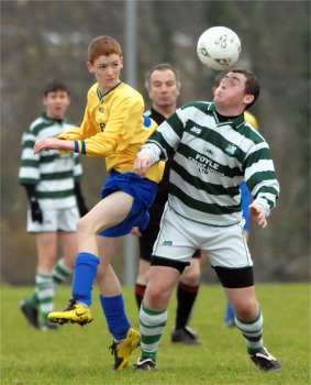 Moville...1 (McDermott 10) Aileach...2 (McGuinness (og) 72, Lynch 79) by Simon McGeady, Inishowen Independent, at Glencrow AILEACH progressed to the next round of the FAI Schoolboys U16 National Cup and a date with Letterkenny after a hard fought 2-1 win over Moville at Glencrow on Saturday afternoon. Despite falling behind early on, Stephen O’Donnell’s youngsters defended superbly and were the better side in the second half, snatching a late-late winner from the imposing Kelvin Lynch. An evenly-matched encounter looked set for extra time when, in the final minute, Lynch latched onto Michael McClay’s precise through ball and beat the advancing Shaun Diver in the Moville net with a cool side-foot finish. Game, set and match Aileach. |