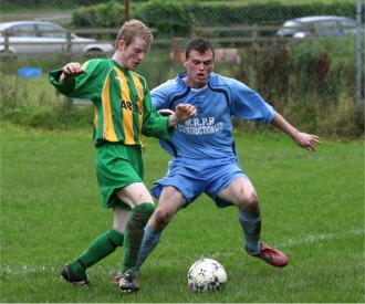 was headed just over by Shane Collins. Kenny Doran was next to have a go from the edge of the area but Toland pulled off a great save. The same player then had another effort on 20 minutes but Toland again saved. Toland was finally beaten on 25 minutes but Ronan Gibson’s pile driver came back off the crossbar. Rashenny then had a good effort when Shane Collins’ volley was just too high. Half time arrived with the teams deadlocked. Both teams battled away in the second half with both defences remaining on top. Rashenny grabbed the lead on 70 minutes when they broke after a Lagan attack. John McLaughlin raced past |