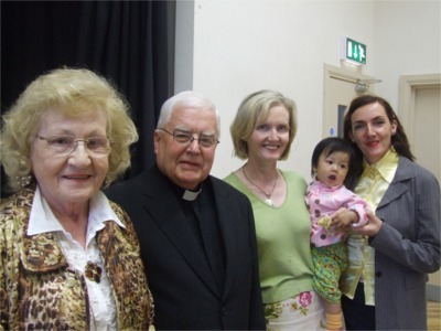 Maura Cullen, Fr. George McLaughlin, Lorraine Byrne with Tracey Cullen and her daughter Thi.