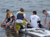 Keith Louden and Desmond Hughes of the Lough Foyle Yacht Club in action near Moville Pier.