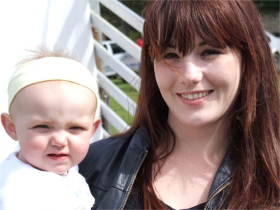 Little Shania Farren, 1, Carndonagh and Bernadette Doherty, Carndonagh enjoy the sports day fun.