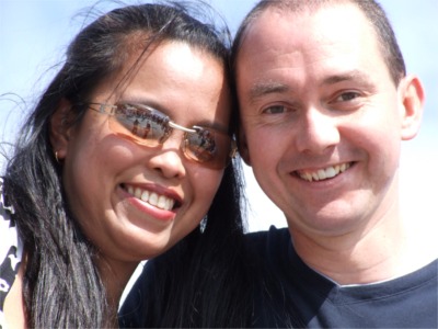 Rowena Layupan of Muff via the Phillipines and Kevin McLaughlin, Muff enjoy the sunshine.