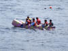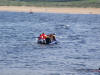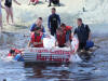 A local oarsman takes the plunge for Liam Collins Hardware as raft mates look on.