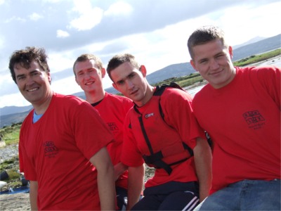 Malin Luxury Homes raft team gear up for the race...from left, Sean McGonagle, Malin, Gerard and Declan McCole, Malin and Barry Diver, Gleneely.