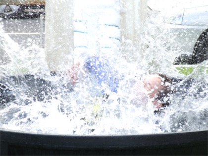 Acting the Mullarkey...Daniel from Glengad takes a dip for the RNLI.