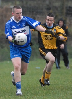 is. Two further points from Sean and Anthony Kelly gave Malin a 1-12 to 0-5 lead with nine minutes of the game remaining. That was a fair reflection of the difference in performance between the teams, but as Malin started coasting to the full-time whistle, Fanad started to chase them down. Defender Paddy Shiels pointed after good work by Mark Friel on the right and Seamie Friel added his fifth and Fanad’s seventh point with five minutes remaining. The tall figure of Michael Sweeney was moved to full forward and he found the net two minutes before the end. His shot from eight yards was half-blocked by substitute Michael Doherty but sneaked in just inside the left hand post. But there was still no need for Malin to panic. They retained possession well until, with virtually the last kick of the game, Fanad launched another high ball into the danger area. Michael Sweeney climbed highest and with his back to goal punched to the net to |